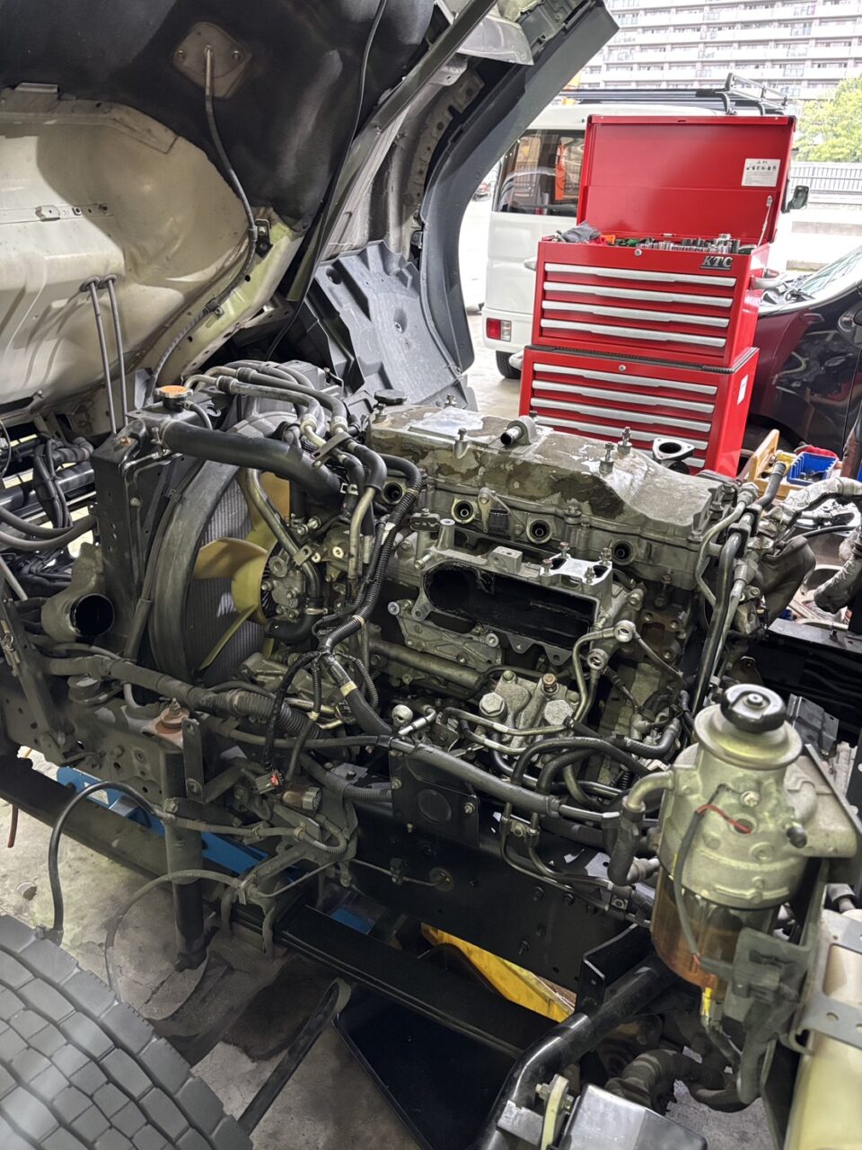 2トントラックのタンクローリーのリビルトミッション載せ替え